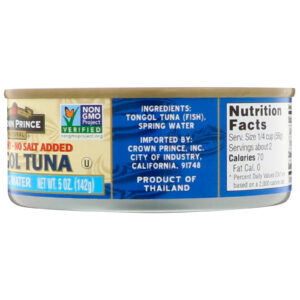 O Atum Tongol Claro em Pedaços é agora uma das várias espécies de atum disponíveis nos Estados Unidos identificadas pelo nome, não apenas pelo anônimo "atum." Não importa se você prefere o Tongol, Amarelo, Albacora ou o Bonito, o atum de melhor qualidade nos mercados de alimentos naturais está estabelecendo padrões para o setor da pesca. Nosso atum Tongol está disponível com ou sem sal adicionado.