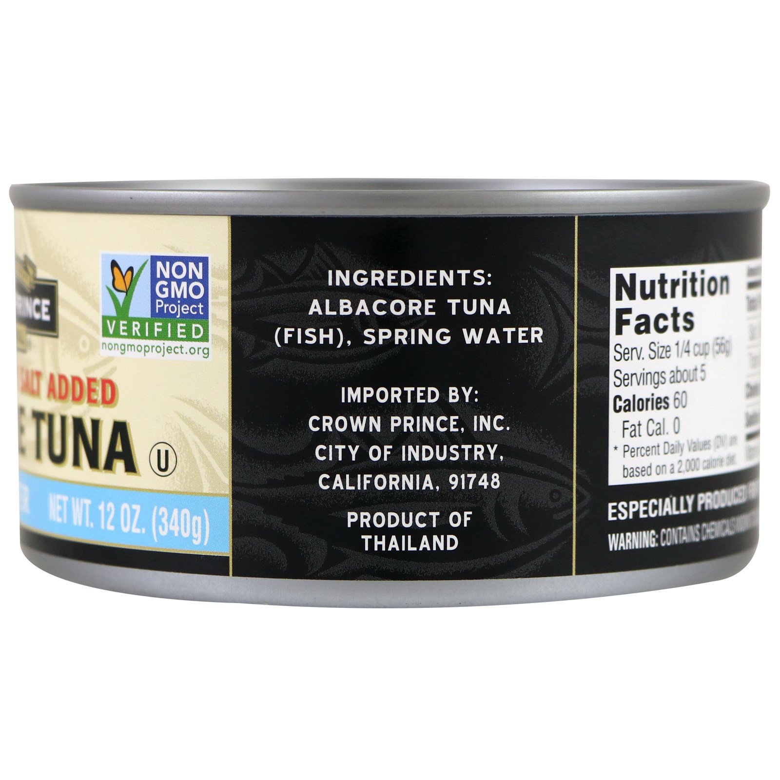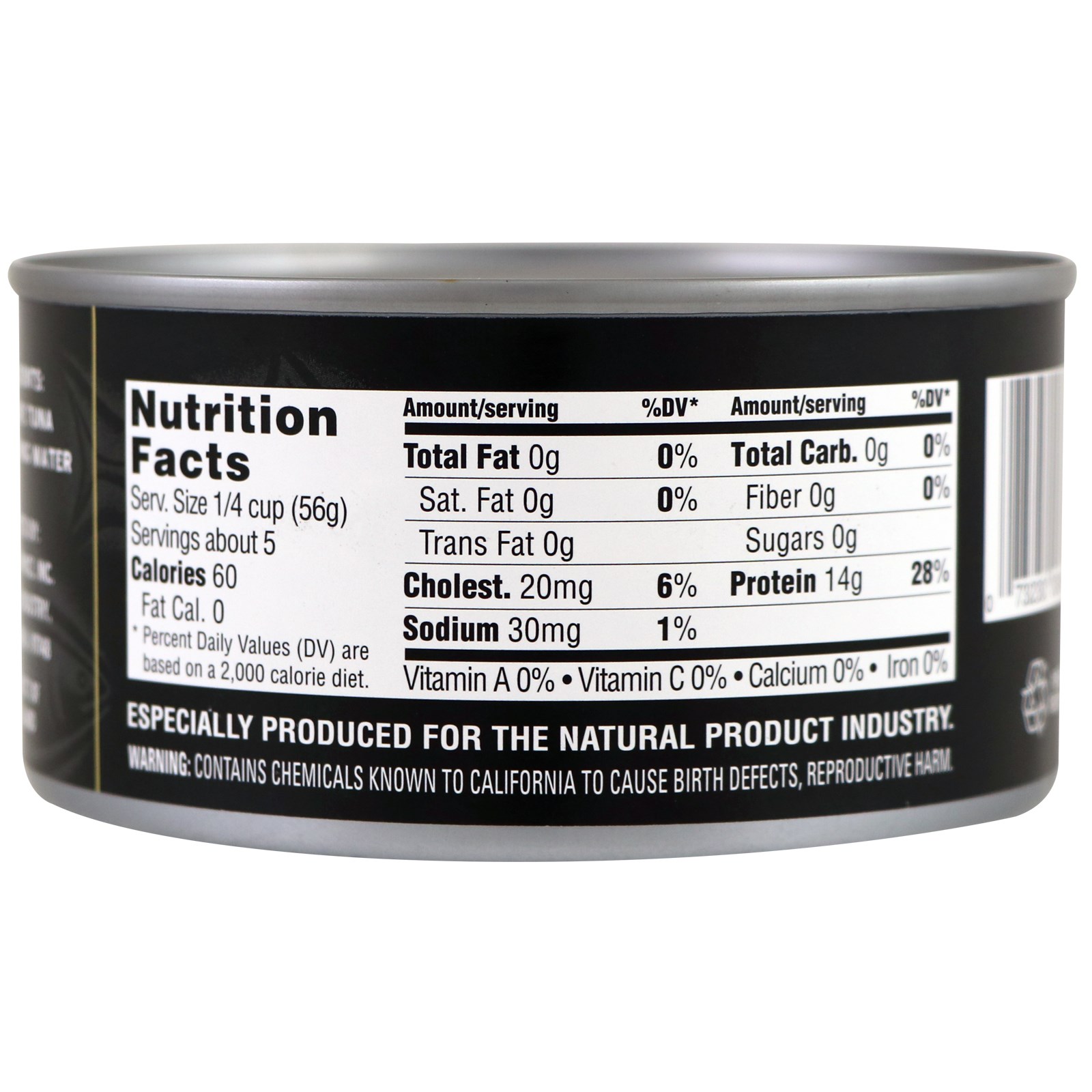 Solid White Albacore Tuna is considered the highest quality tuna available in a can. The meat is light in color and firm in texture without a lot of sediment. One serving of Albacore Tuna provides about one-third of the daily needed protein with very little fat. Our larger sized cans are perfect for feeding the whole family a low-fat, nutritious meal and are available with or without added salt.
