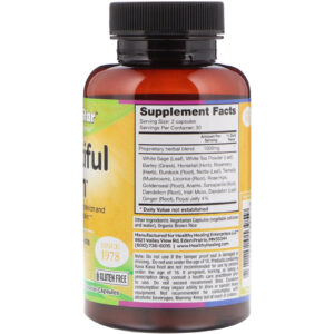 | Sálvia Branca (folha.), Chá Branco em Pó (Folha), Cevada (Grama), Cavalinha (Erva), Alecrim (Erva), Bardana (Raiz), Urtigas (Folha), Tremella (Cogumelo) Alcaçuz (Raiz), Rosa Mosqueta , Goldenseal (raiz), Arame, salsaparrilha (raiz), dente de leão (raiz) musgo irlandês, dente de leão (folha), gengibre (raiz) geléia real 4% | ||