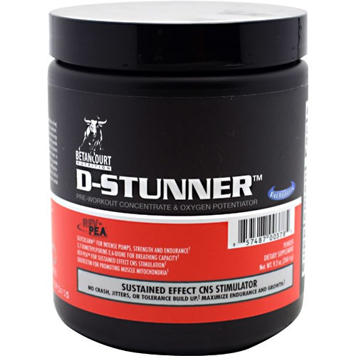 D-Stunner is a Pre-Workout Concentrate & Oxygen Potentiator. D-Stunner constains Glycocarn for intense pumps, strength and endurance 3,7-dimethylpurine-2,6-dione for breathing capacity. D-Stunner also contains Rev-Pea for sustained effect CNS stimulation Quercetin for promoting muscle mitochondria. In the era of concentrated pre-workouts, the race is on to create even stronger products with no emphasis on long term increases in: performance, muscle growth or preventing devastating ‘crashes’ that can ruin your workouts. D-Stunner features an advanced stimulytic blend of with Rev-Pea which results in a no crash, sustained energy experience. Rev-Pea is an advanced blend of energy and focus enhancing phenylethlamines promote the release of epinephrine and norepinephrine, 2 powerful neurotransmitters.
