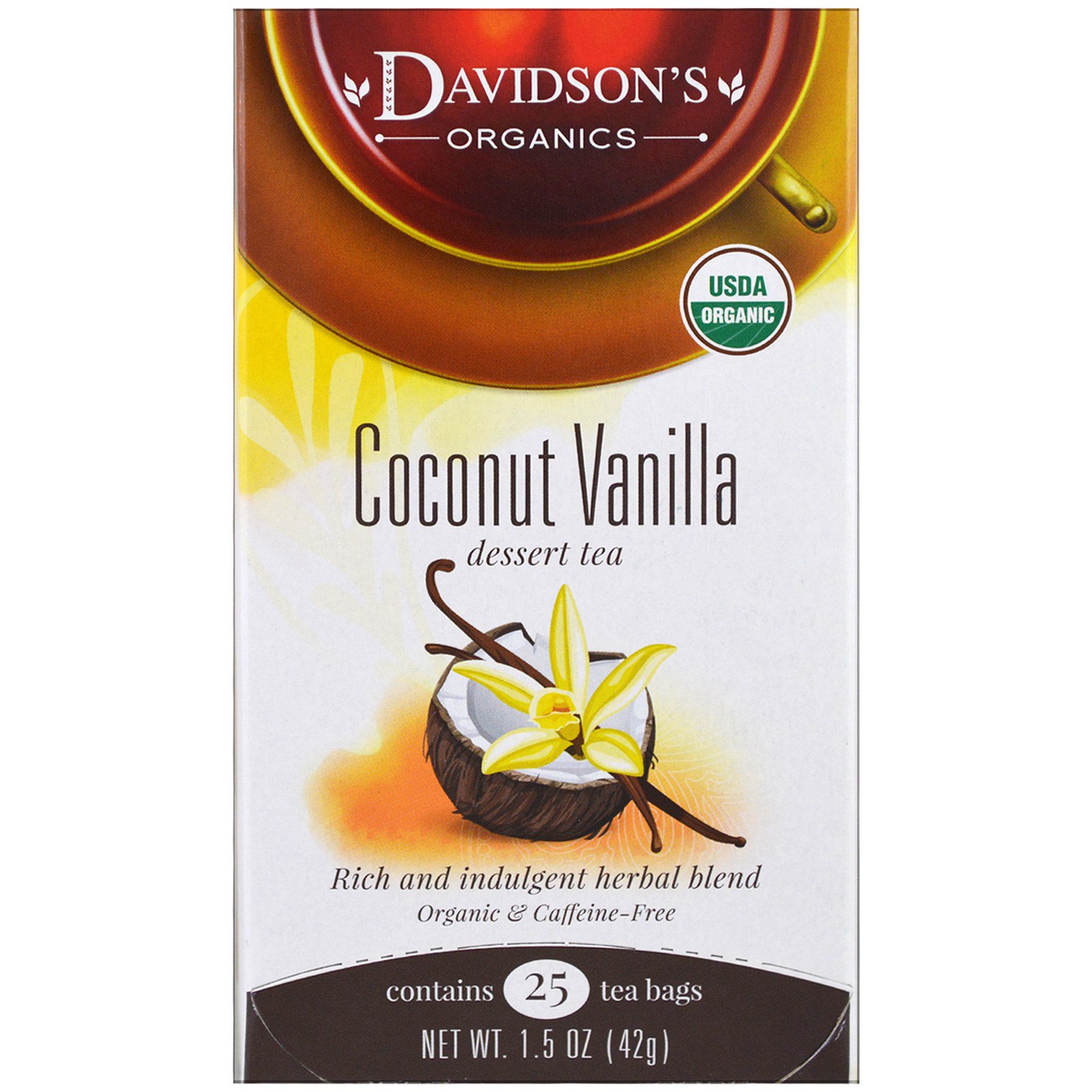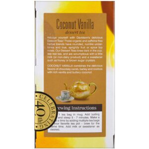 Davidson's Tea, Orgânico, Chá de Sobremesa de Baunilha com Coco, Sem Cafeína, 25 Saquinhos, 42 g (1,5 oz)