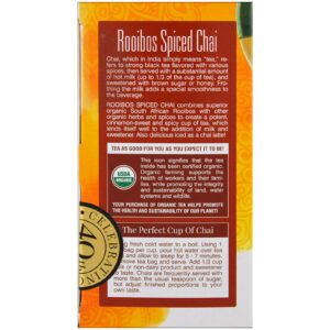 Rooibos Spiced Chai combines superior organic South African Rooibos with other organic herbs and spices to create a potent, cinnamon-sweet and spicy cup of tea, which lends itself well to the addition of milk and sweeteners. Also delicious iced as a chai latte!