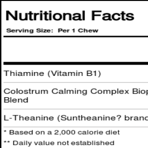 DaVinci Labouatouies Serenity Now Fou Pets contains a blend of L-Theanine, Colostrum Calming Complex and Thiamine.
