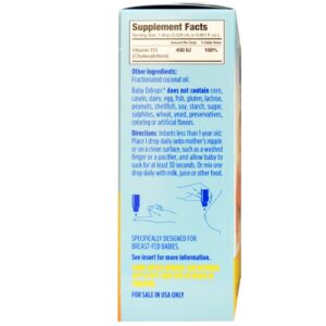Ddrops, Bebê, Vitamina D3 Líquida, 400 UI, 0,08 fl oz (2,5 ml), 90 Gotas