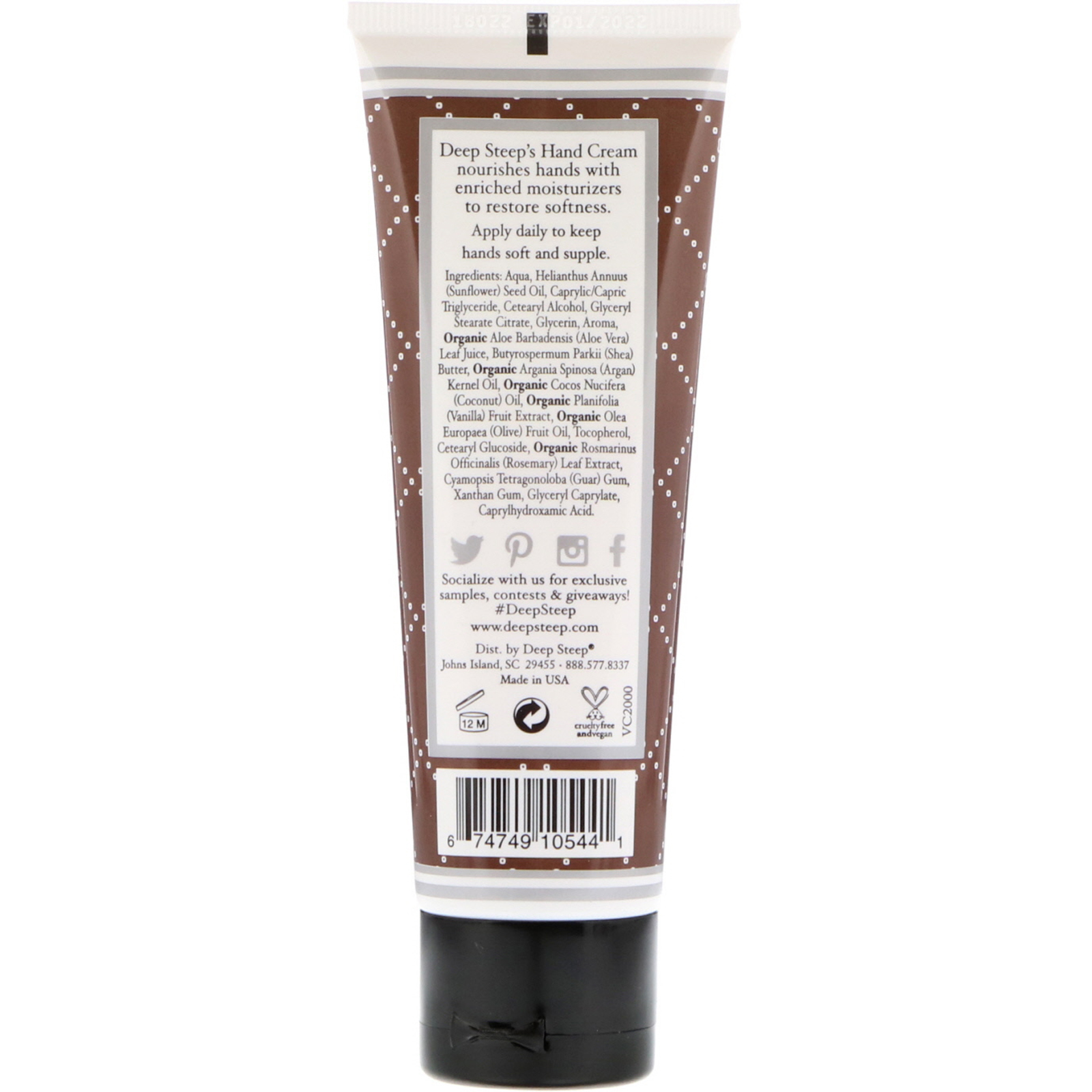 Deep Steep, Hand Cream, Vanilla – Coconut, 2 fl oz (59 ml)