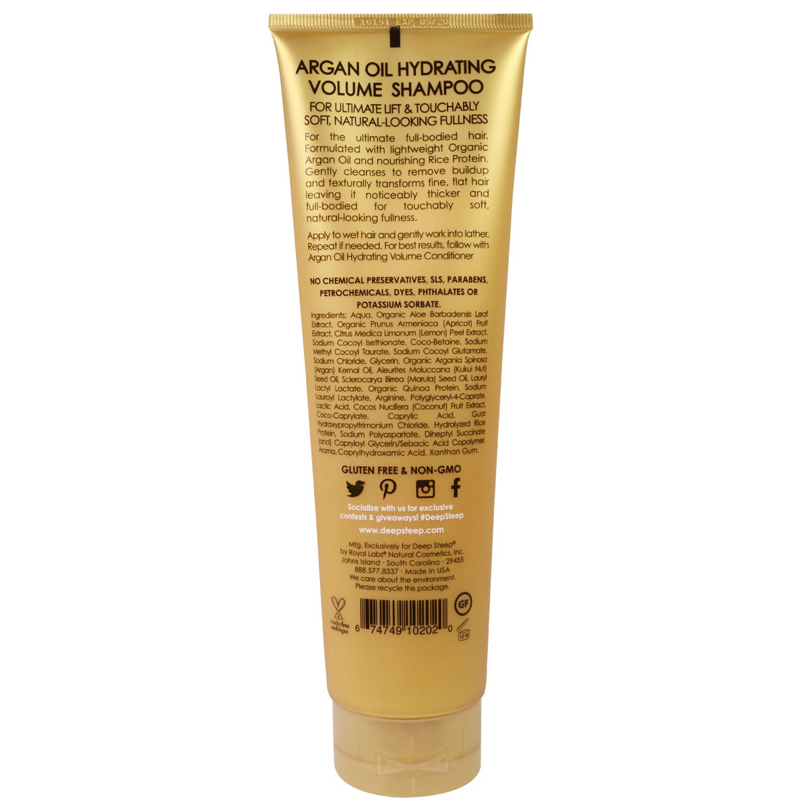 Deep Steep, Óleo de Argan, Shampoo Hidratante Para Volume, Deliciosamente Volumoso, 295ml