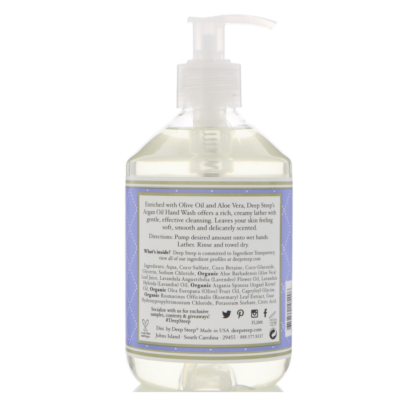 - Deep Steep, Sabão com Óleo de Argan para as Mãos, Lavanda- Baunilha, 17,6 fl oz (520 ml)