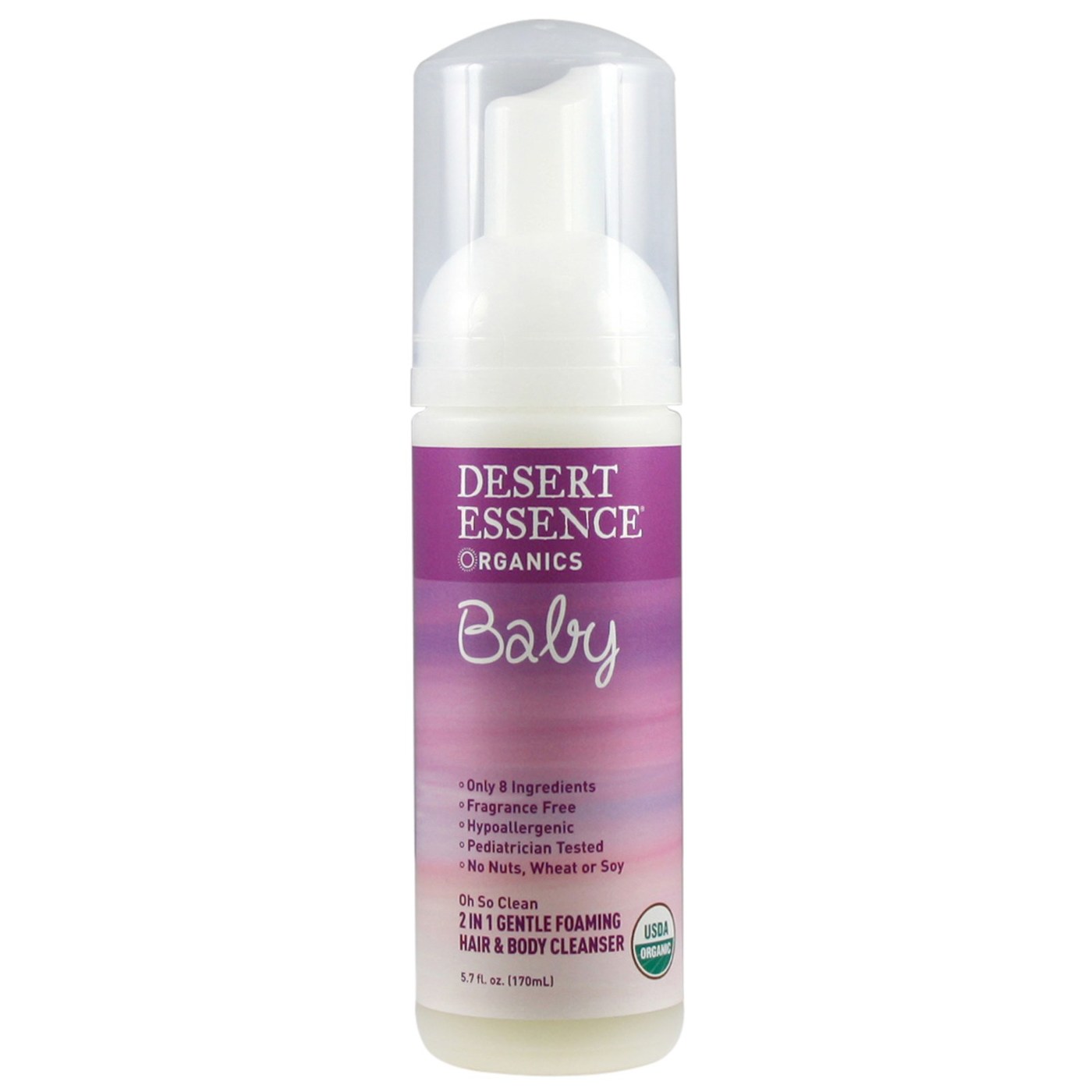 Baby 2-in-1 Gentle Foaming Hair & Body Cleanser from Desert Essence is USDA Organic certified and consists of a cruelty-free, Biodegradable formula.