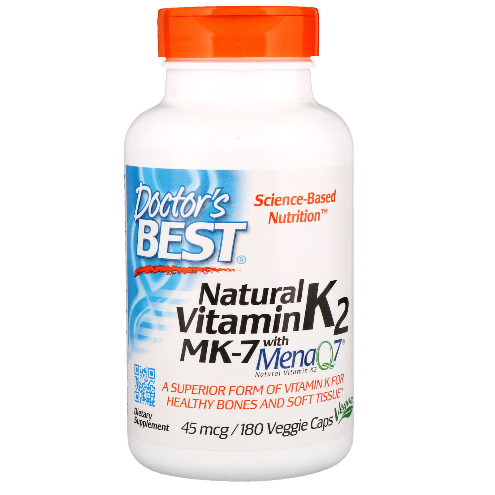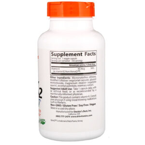 Doctor’s Best Natural Vitamin K2 MK-7 with MenaQ7 provides the superior form of vitamin K for optimum bioavailability and delivery to the body. Vitamin K isn’t one vitamin, it’s a family of fat-soluble vitamins with similar chemical structures but different metabolic properties. K2 belongs to a group of vitamin K compounds called menaquinones, which show greater bioactivity when compared to K1, the ordinary supplemental form. K2 is absorbed more completely, remains in the body longer and delivers more benefits for bones, blood vessels and other soft tissues.