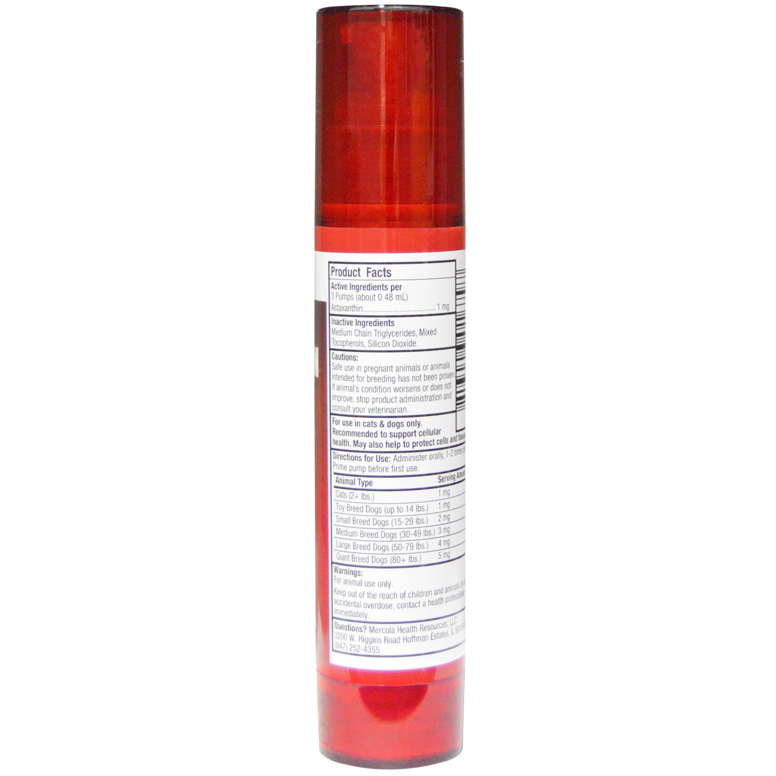 - Dr. Mercola, Astaxantina, para Cães de porte Médio a Grande, 58 ml