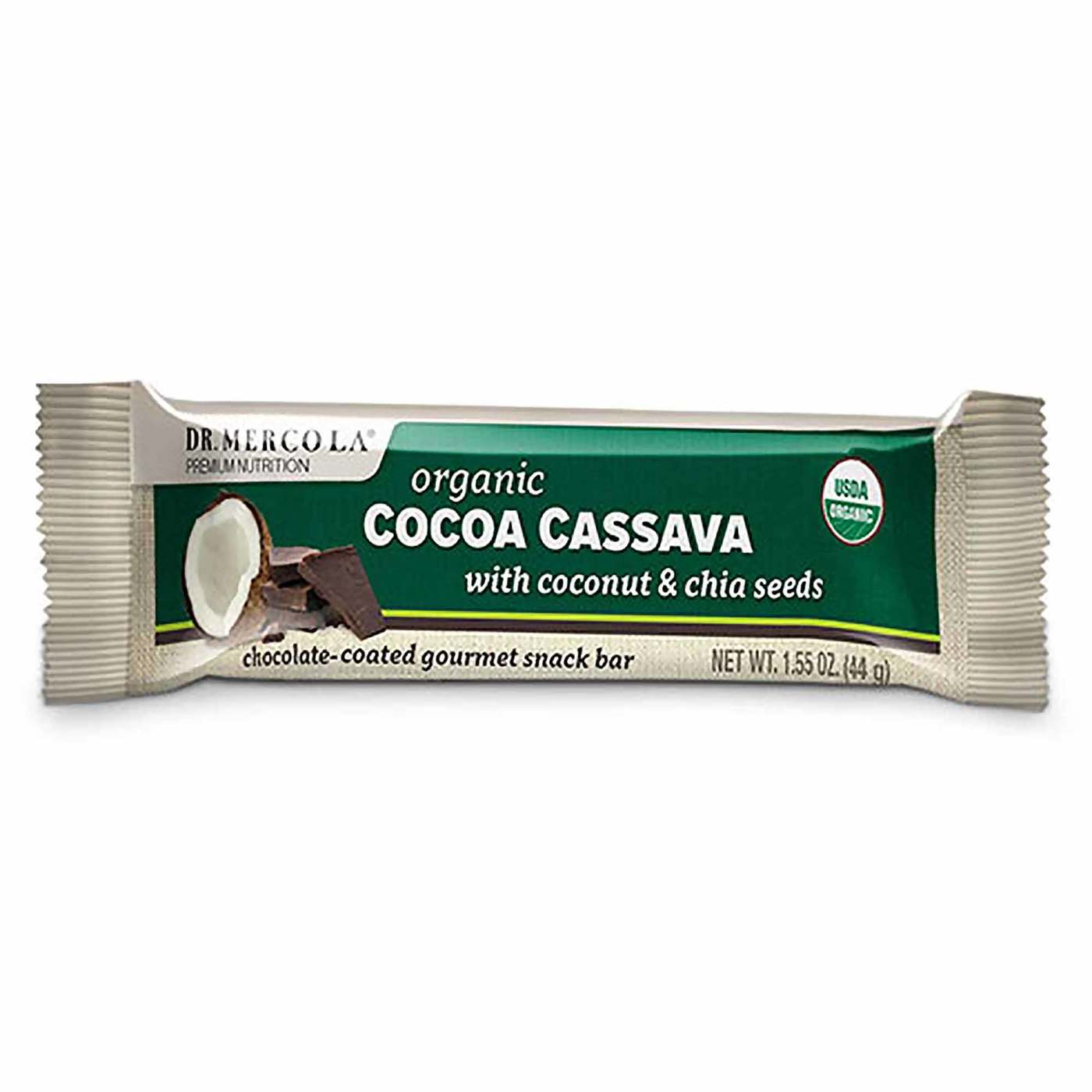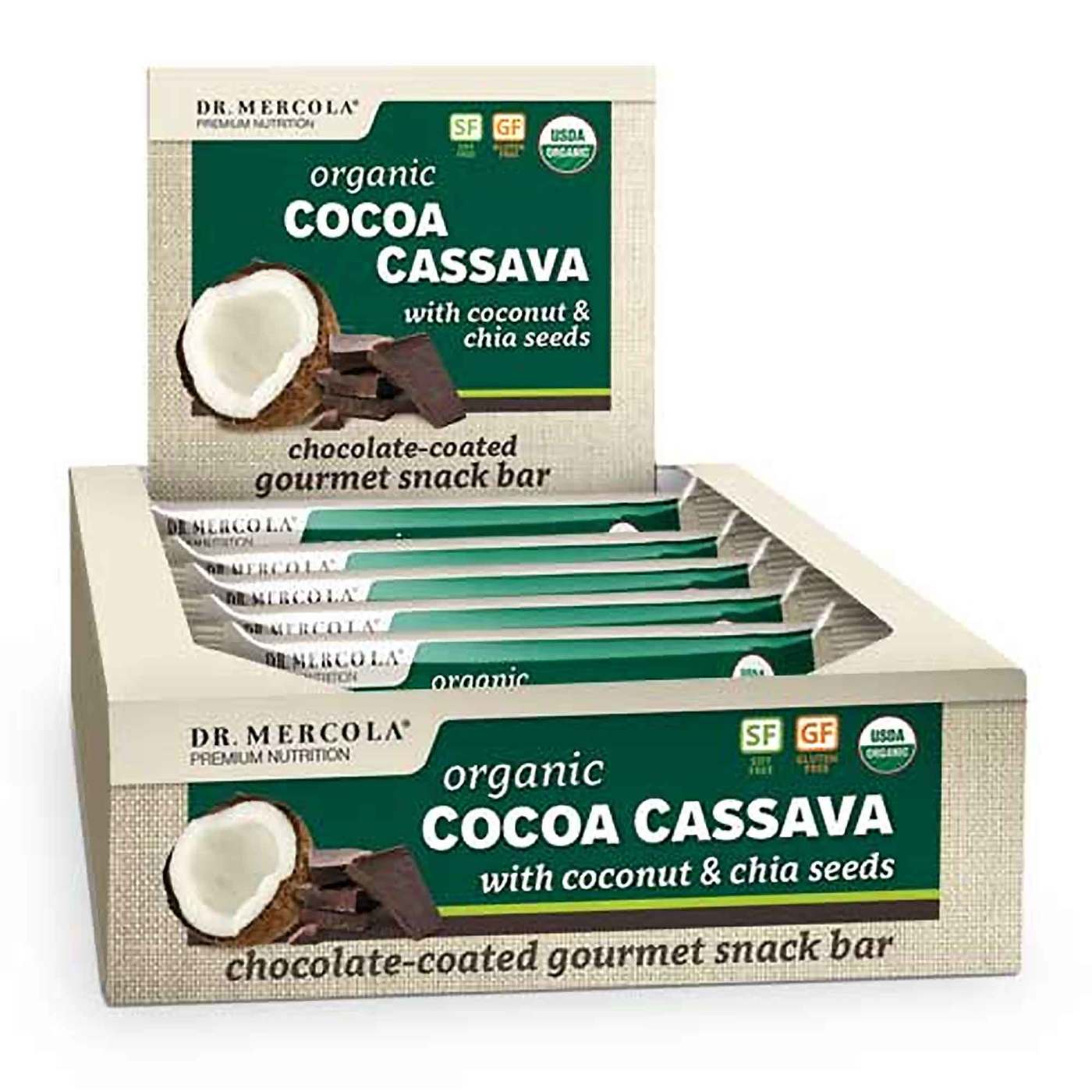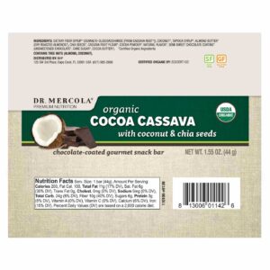 Barras de mandioca de cacau do Dr. Mercola® fornecem a energia que você precisa em seu dia ocupado. As barras de mandioca de cacau do Dr. Mercola contêm coco orgânico e sementes de chia. Cada barrinha com cobertura de chocolate fornece 3 gramas de proteína enquanto tem zero colesterol.