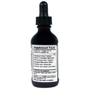 | Formula Extract Formula: Orgânica Changbai Mount Red Ginseng raiz, orgânica Changbai Mountain Whit Genseng raiz, American Ginseng raiz (fresco e seco). |