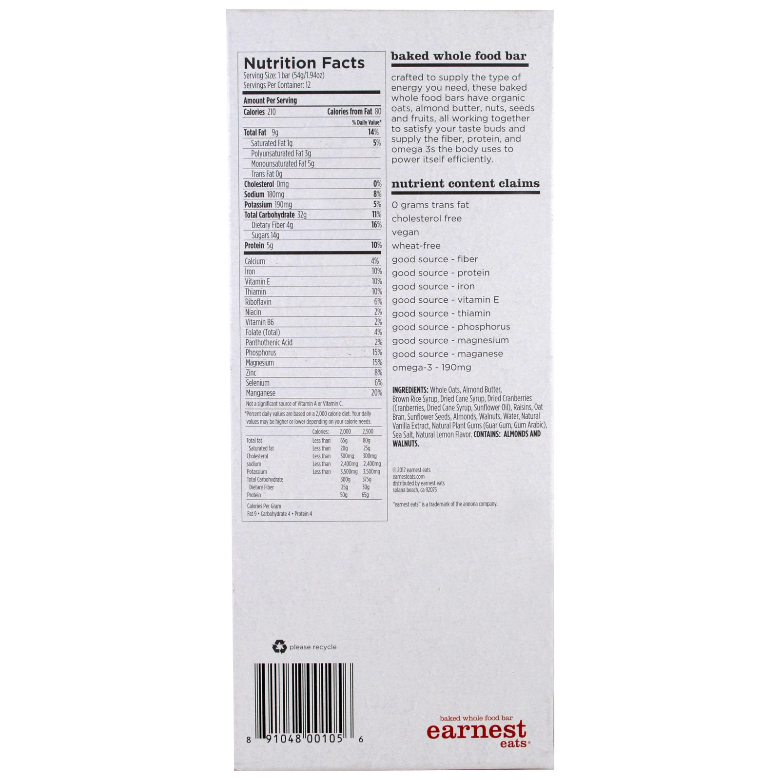 Crafted to supply the type of energy you need, these baked whole food bars have organic oats, almond butter, nuts, seeds and fruits, all working together to satisfy your taste buds and supply the fiber, protein, and supply the fiber, protein, and omega 3s the body uses to power itself efficiently.