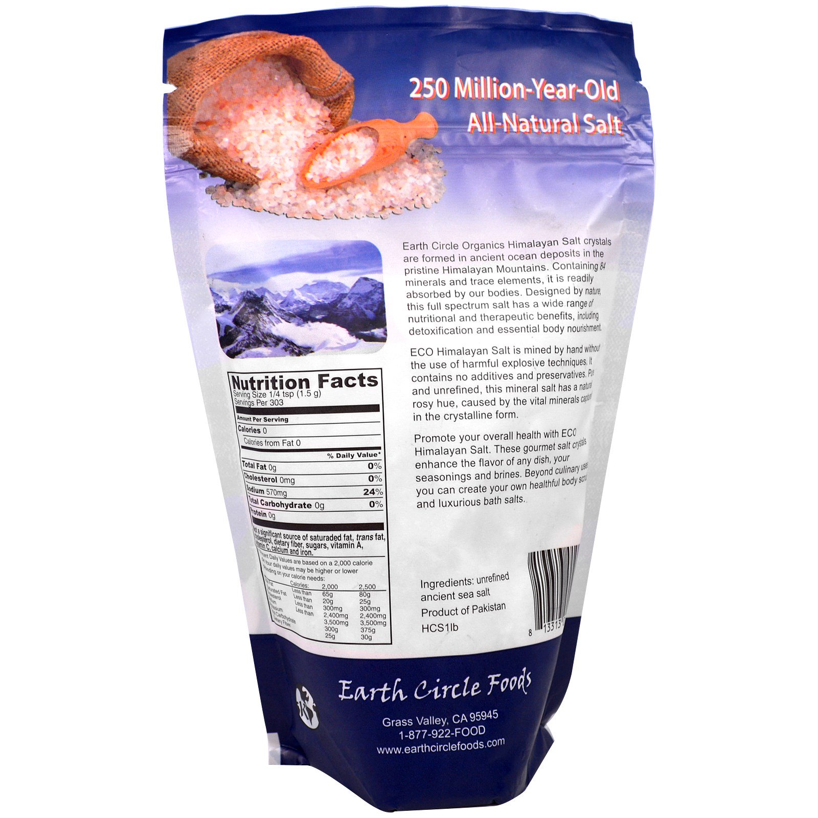 Earth Circle Organic Himalayan Salt crystals are formed in ancient ocean deposits in the pristine Himalayan Mountains. Containing 84 minerals and trace elements, it is readily absorbed by our bodies. Designed by nature, this full spectrum salt has a wide range of nutritional and therapeutic benefits, including detoxification and essential body nourishment.