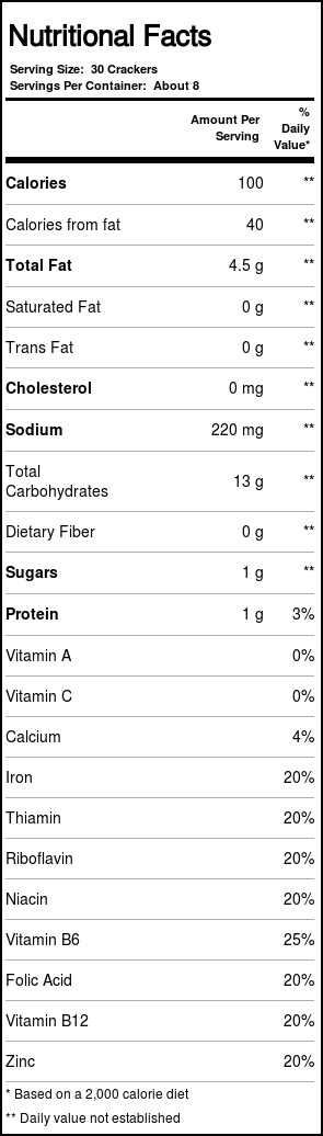 Recomendações de uso: Your toddler should enjoy 30 crackers as a snack.