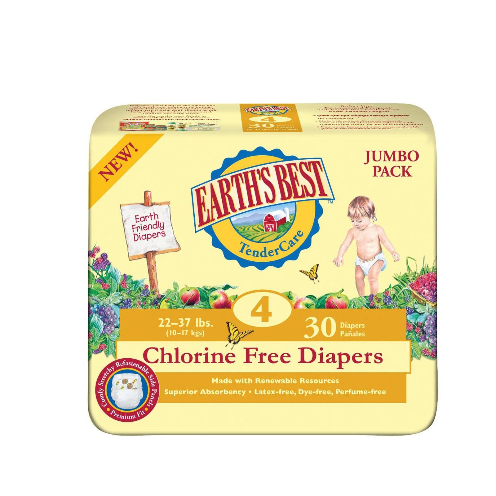 Earth’s Best Tender Care Chlorine Free Diapers – Size 4 – Case Of 4 – 30 Count