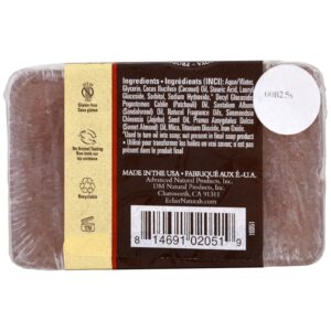 Aqua / água, glicerina, cocos nucifera (coco), ácido esteárico, lauril glucósido, sorbitol, hidróxido de sódio *, deglicósido de decilo óleo de pogostemin cablin (patchouli), óleo de sândalo de santalum (óleos de sândalo), óleos de fragrância natural, simmondsia chinensis (jojoba) óleo de semente, óleo de prunus amygdalus dulcis (amêndoa doce), mica, dióxido de titânio, óxido de ferro.