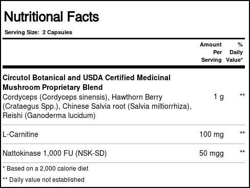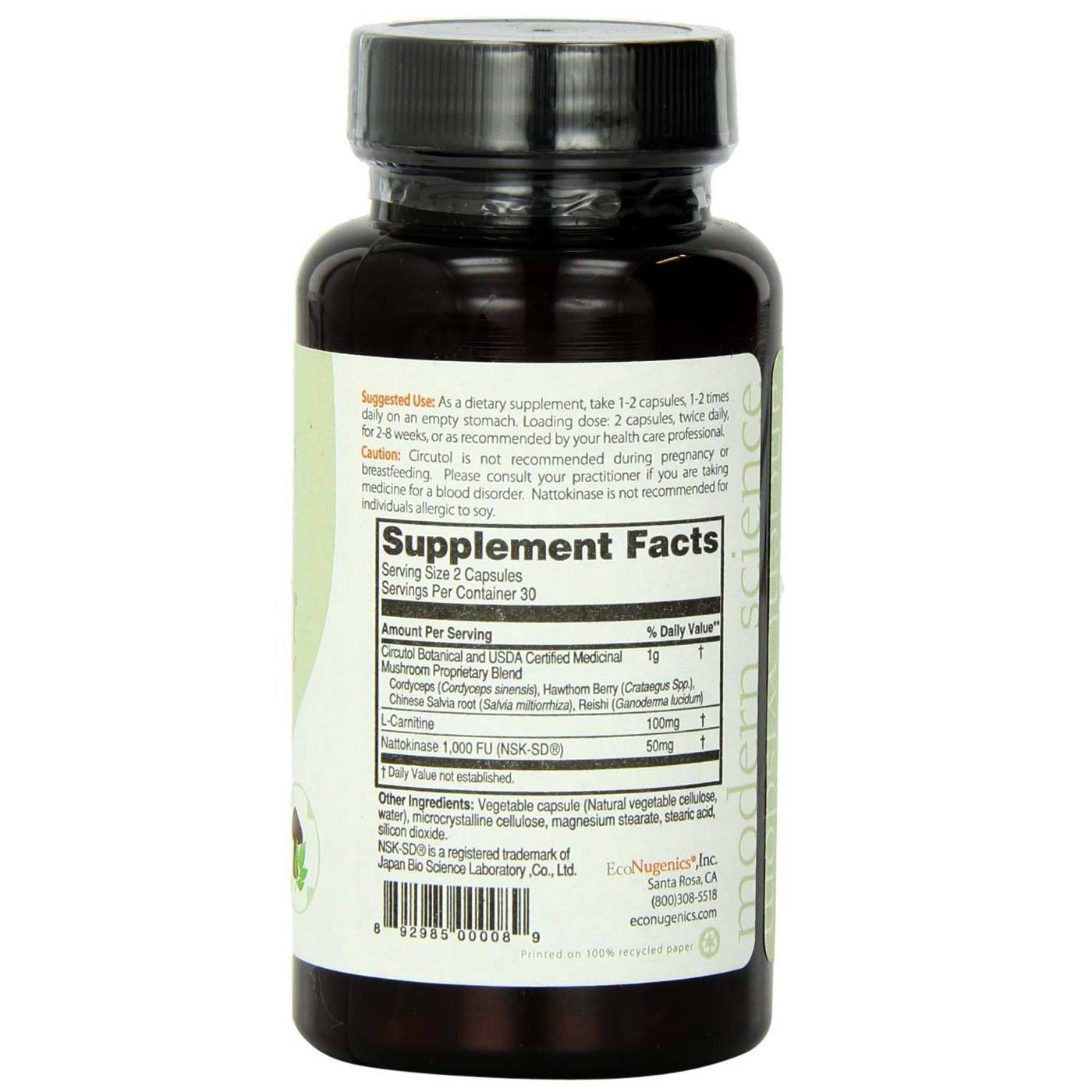 Circutol is formulated by ecoNugenics with L-Carnitine, Nattokinase and organic mushrooms.