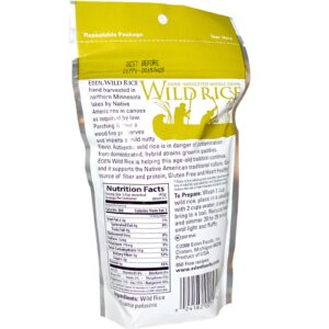 Eden Wild Rice hand harvested in northern Minnesota lakes by Native Americans in canoes as required by law. Parching it over a wood fire preserves and imparts a mild nutty flavor. Authentic wild rice is in danger of contamination from domesticated, hybrid strains grown in paddies. Eden Wild Rice is helping this age-old tradition continue, and it supports the Native American traditional culture. Good source of fiber and protein, gluten free and heart healthy.