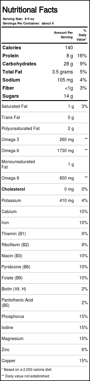 Notas: Dairy and Lactose Free. GEO Free. Kosher Pareve.