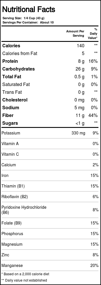 />Notas: Macrobiotic, organic, non-GMO verified and certified kosher pareve. 1/2 Cup raw beans equals approximately 1 1/2 cups cooked.