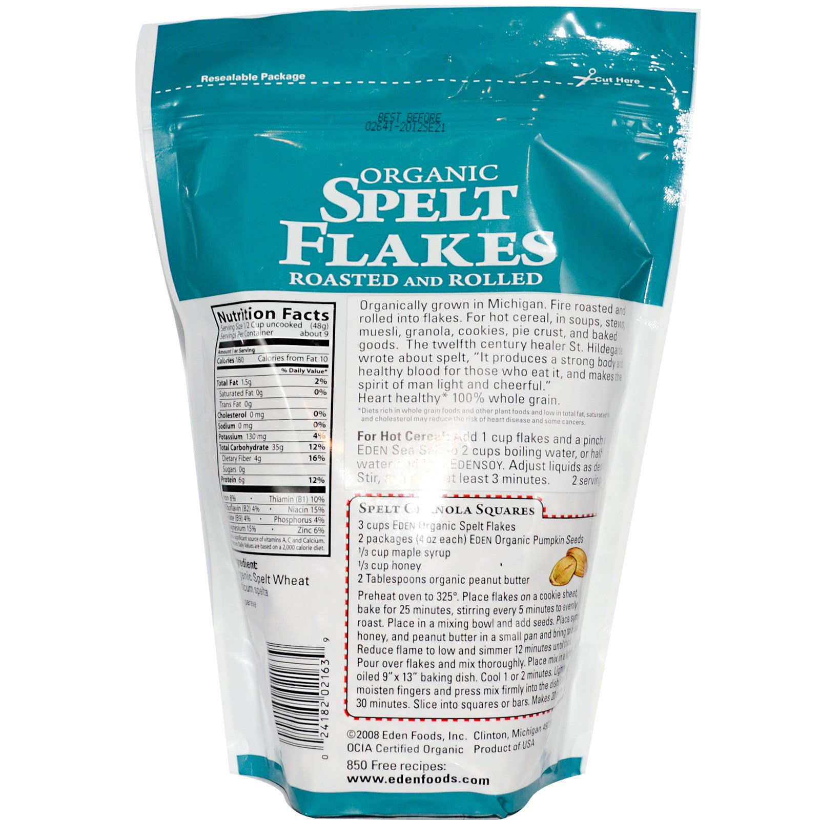Organically grown in Michigan. Fire roasted and rolled into flakes. For hot cereal, in soups, stews, muesli, granola, cookies, pie crust, and baked goods. The twelfth century healer St. Hildegarde wrote about spelt, "It produces a strong body and healthy blood for those who eat it, and makes the spirit of man light and cheerful."