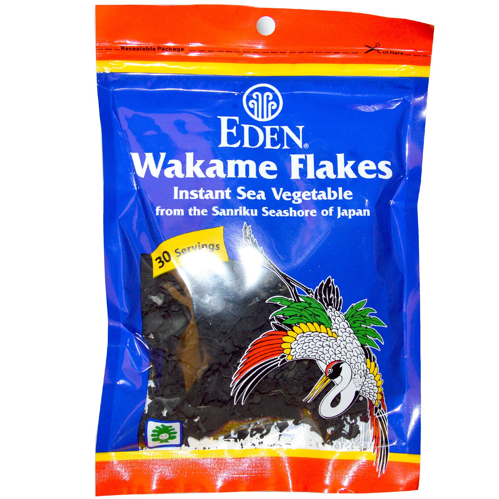 The finest Japanese wakame comes from the Sanriku seashore. It’s highly valued and the highest grade. From harvesting to package it goes through 25 processes and 17 of these are to remove foreign material. Great care is taken to avoid altering nutritional value. It is skillfully grown, harvested, and handled. Eden Wakame grows in the clean, cool Arctic current along northeast Japan in a narrow band between 40° and 35° latitude where water temperature and sunlight are ideal. Hand harvested from February through April, washed, simmered, trimmed, and dried. It’s versatile, easy to use, and low sodium. Essential for miso soup that is not complete without the happy green color and nutrients of wakame. No washing, soaking, or cutting. Simply place in the soup, or soak 3 to 5 minutes for salad. The flakes expand over 20 times when soaked. A pure Eden selected natural food.