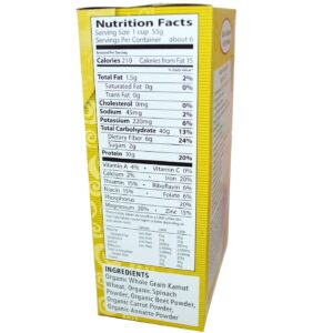Organic Kamut Vegetable Spirals have four-color noodles made from golden whole grain, orange carrots, red beets and green spinach. Once cooked, these colors brighten while the noodles maintain a delicious texture. This ancient grain pasta is often enjoyed by people with gluten sensitivities.