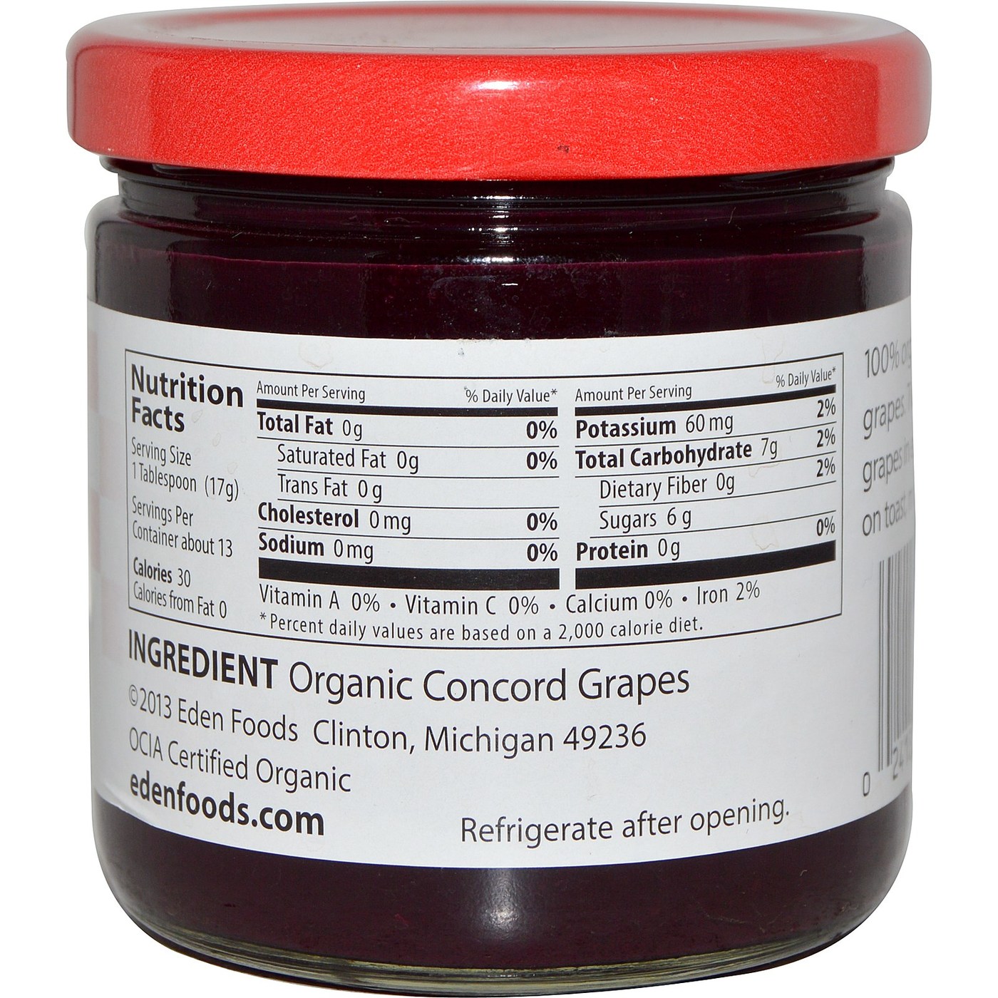 Foods Organic Grape Butter is a rich color and contains over two pounds of fruit in each jar.