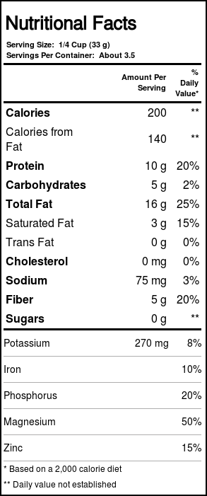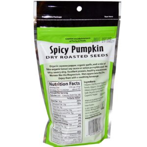 Organic Spicy Pumpkin Seeds are harvested from pure, organic pumpkins, dry roasted and mixed with a delicious combination of salty, spicy tamari soy sauce, garlic and cayenne pepper. An excellent source of protein, fiber, phosphorus and magnesium, Organic Spicy Pumpkin Seeds satisfy your hunger cravings without adding inches to your waistline. The low sodium, cholesterol-free formula will also help reduce your risk of hypertension and certain heart conditions.