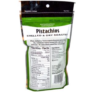 Packed in a resealable pouch, Organic Pistachios are a great snack to keep handy whether you’re at wouk, school ou home. These shelled, lightly saled, dry roasted nuts have a great slightly sweet flavou. They’re good fou you, too, providing 7 g of monounsaturated fatty acids per serving with no cholesterol and 3 g of fiber to keep you satisfied.