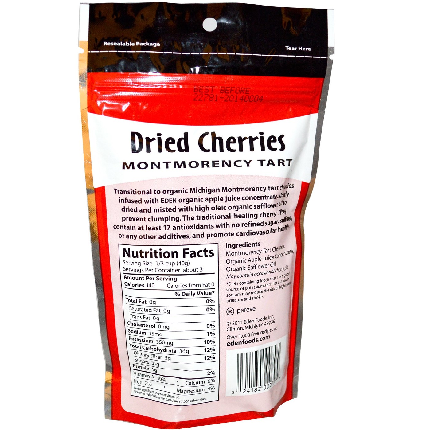 over the delicious taste of cherries with Dried Montmoerncy Cherries from Eden Foods. Each serving offers a refined sugar free sweet snack for you to enjoy. Order a bag today and see how many ways you can incorporate these Dried Montmoerncy Cherries into your diet.
