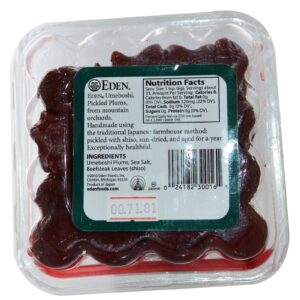 Eden Umeboshi, Pickled Plums, from mountain orchards. Handmade using the traditional Japanese farmhouse method: pickled with shiso, sun-dried, and aged for a year. Exceptionally healthful.