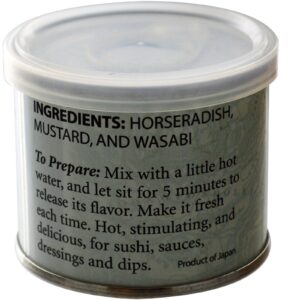 To Prepare: Mix with a little hot water, and let sit for 5 minutes to release its flavor. Make it fresh each time. Hot, stimulating and delicious, for sushi, sauces, dressings and dips.
