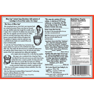 *This soup contains 65% less sodium, a reduction of 520 mg of sodium per serving below the 780 mg/serving average of the leading brands of instant miso soup.