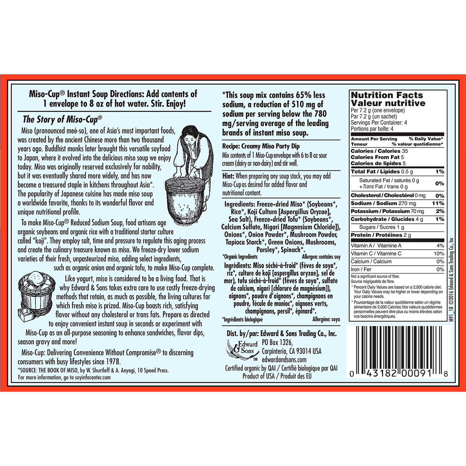 Edward & Sons, Edward & Sons, Miso-Cup, Reduced Sodium Soup, 4 Single Serving Envelopes, 7.2 g Each