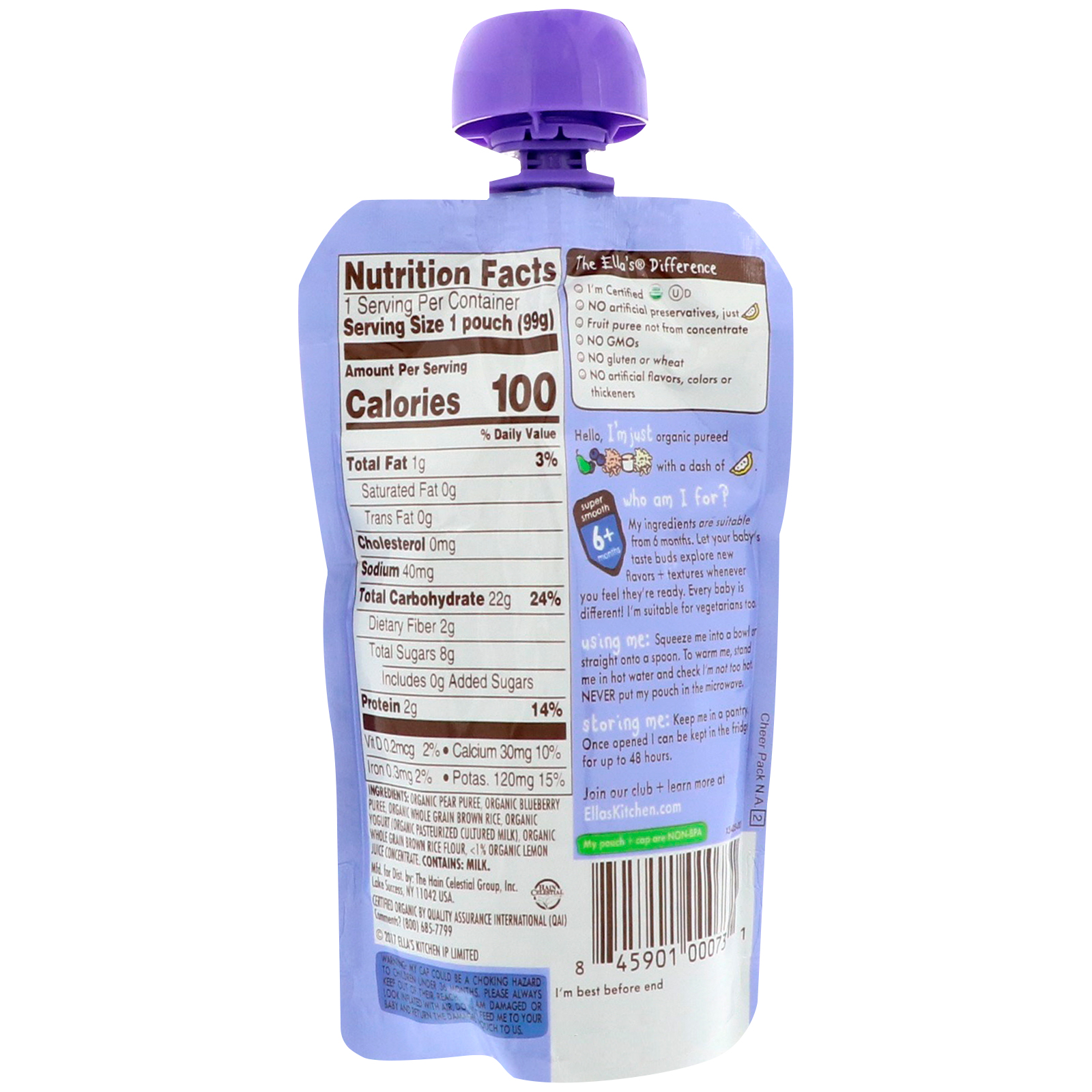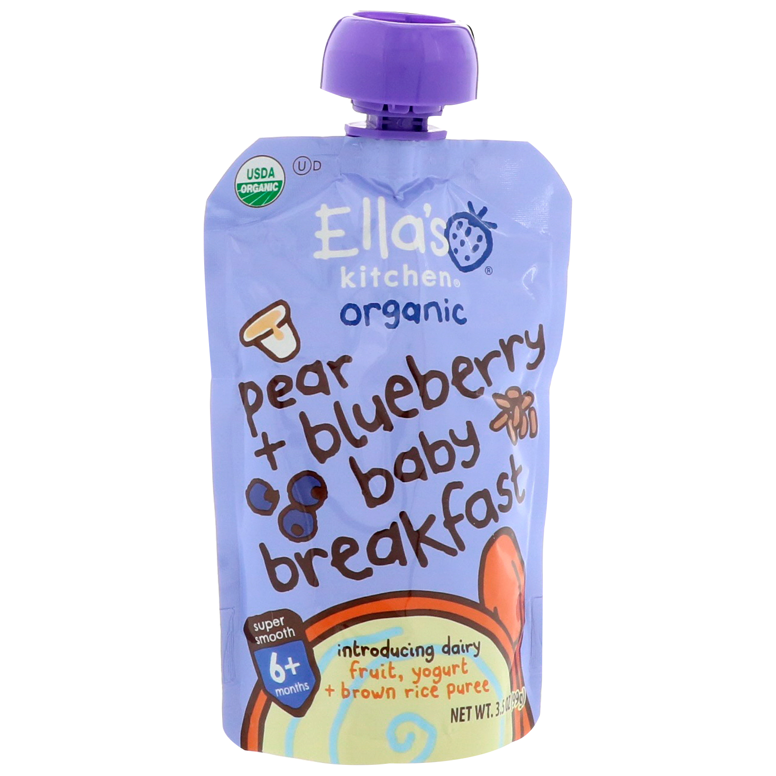 Ella's Kitchen, Café da Manhã do Bebê com Pera + Mirtilo, Introdução aos Laticínios, 3,5 oz (99 g)