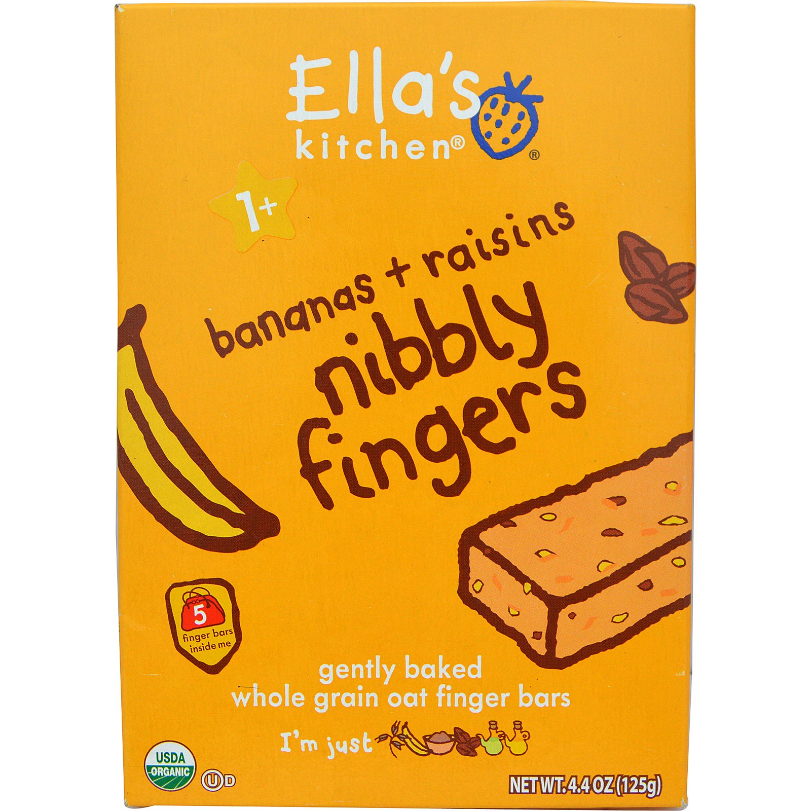 Ella's Kitchen, Nibbly Fingers, Banana e Passas, 5 Barras, 4.4 oz (8g) Cada