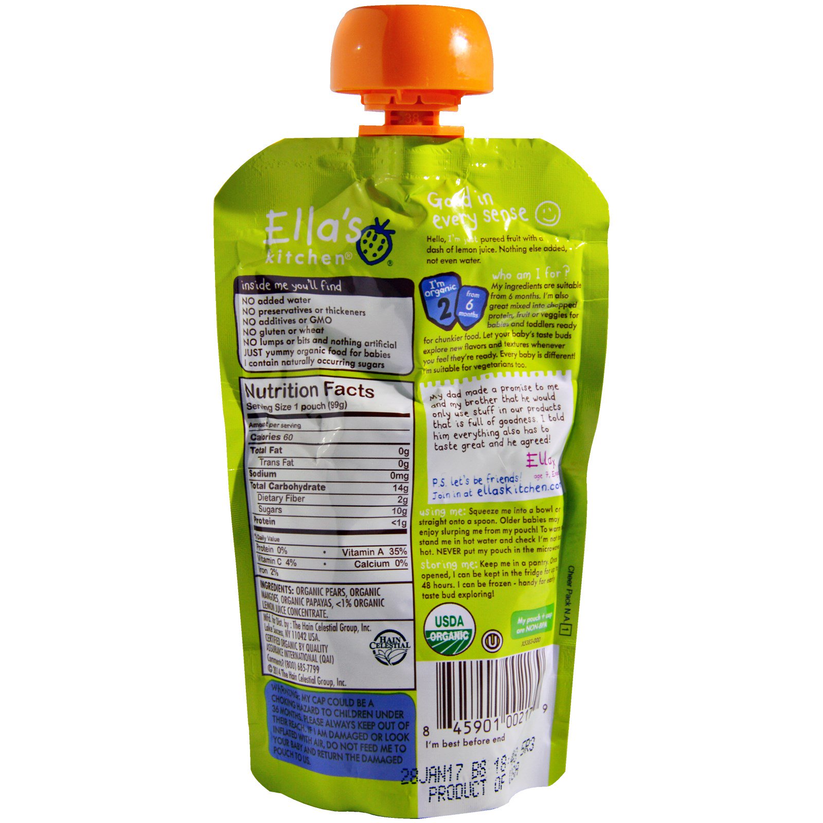 Ella's Kitchen, Purê Supermacio, Peras, Mangas + Mamões Orgânicos, 3,5 oz (99 g)