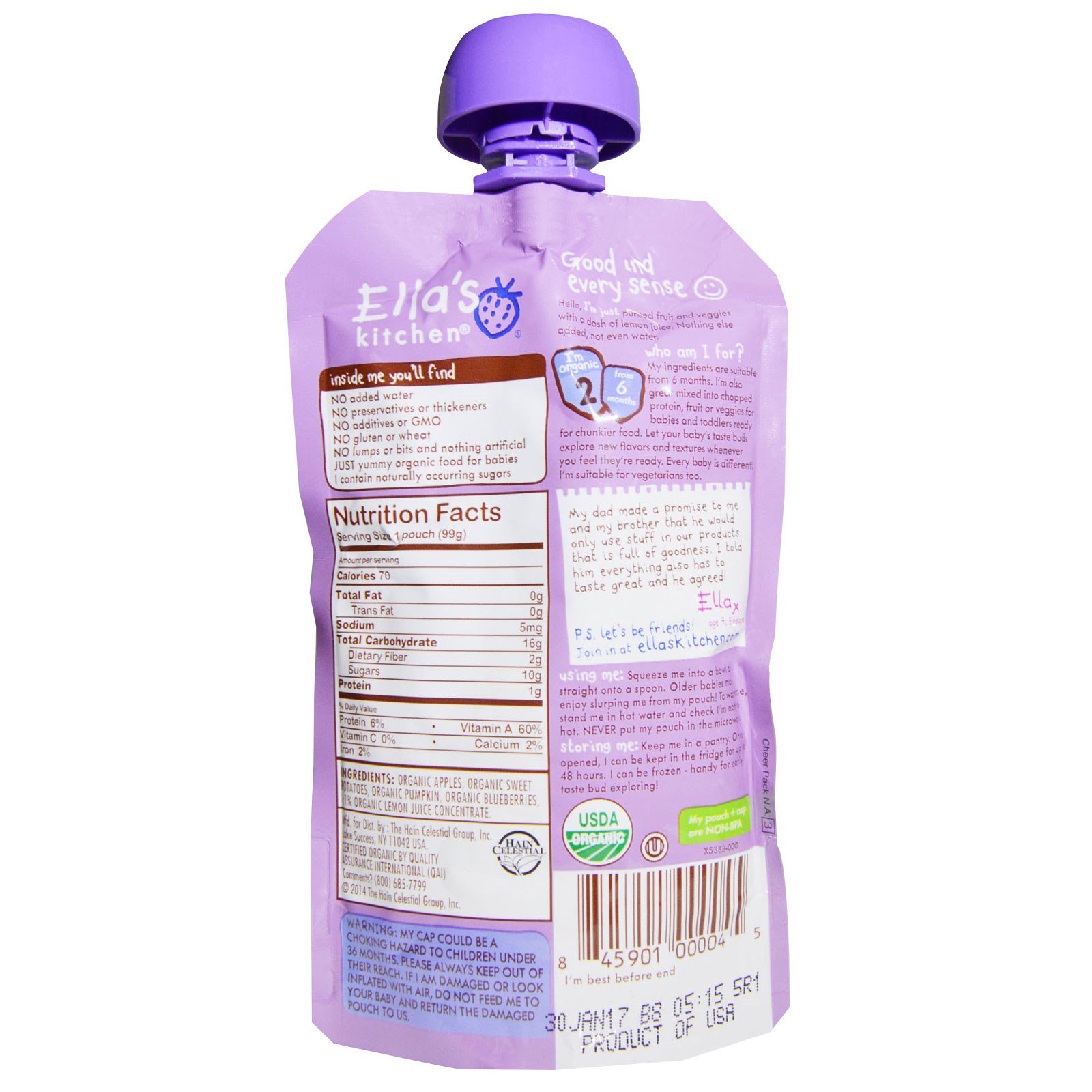 Ella's Kitchen, Super Puro e Suave Orgânico, Maçãs, Batatas Doces, Abóbora + Mirtilo, 3.5 oz (99 g)