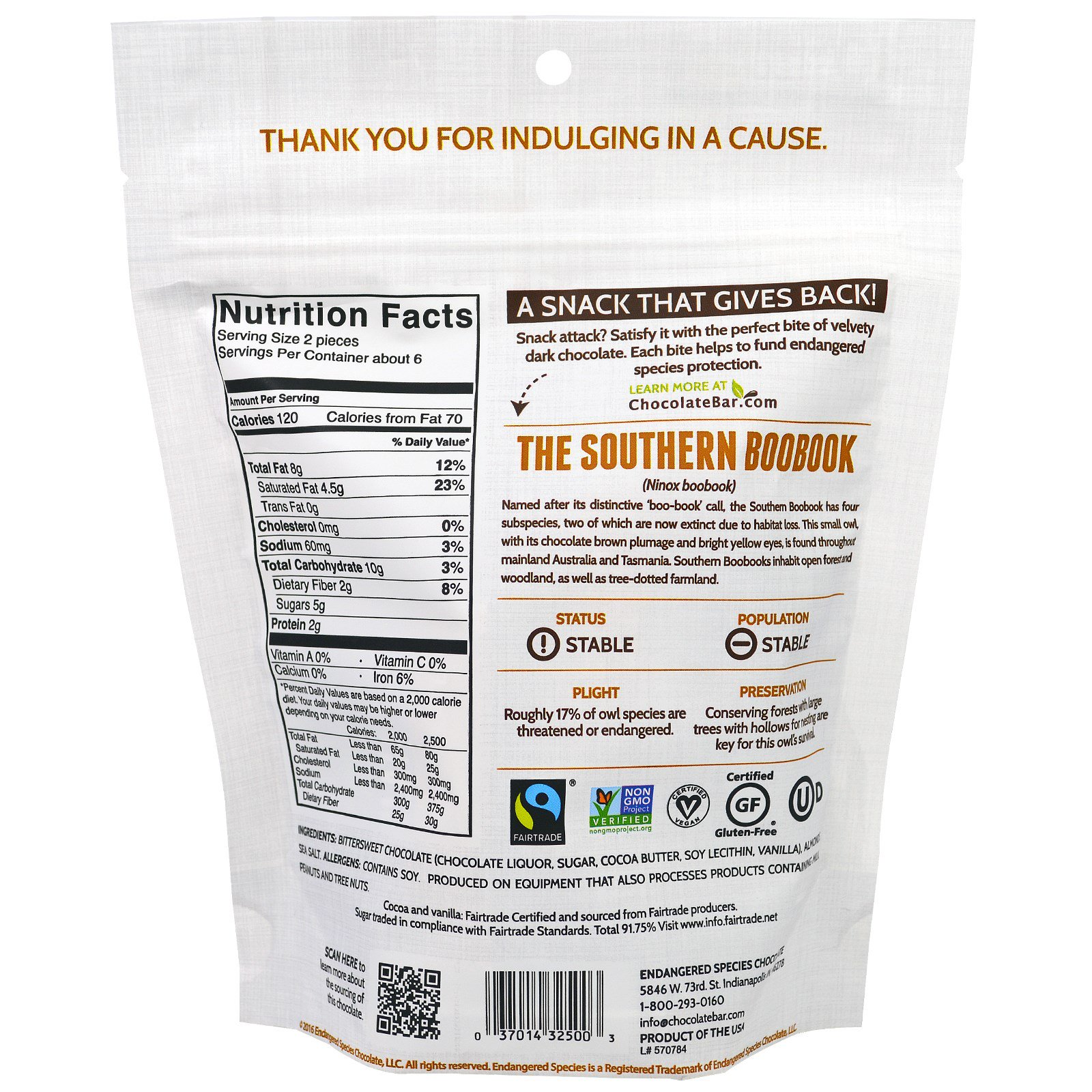 Bittersweet chocolate (chocolate liquor, sugar, cocoa butter, soy lecithin, vanilla), almonds, sea salt.