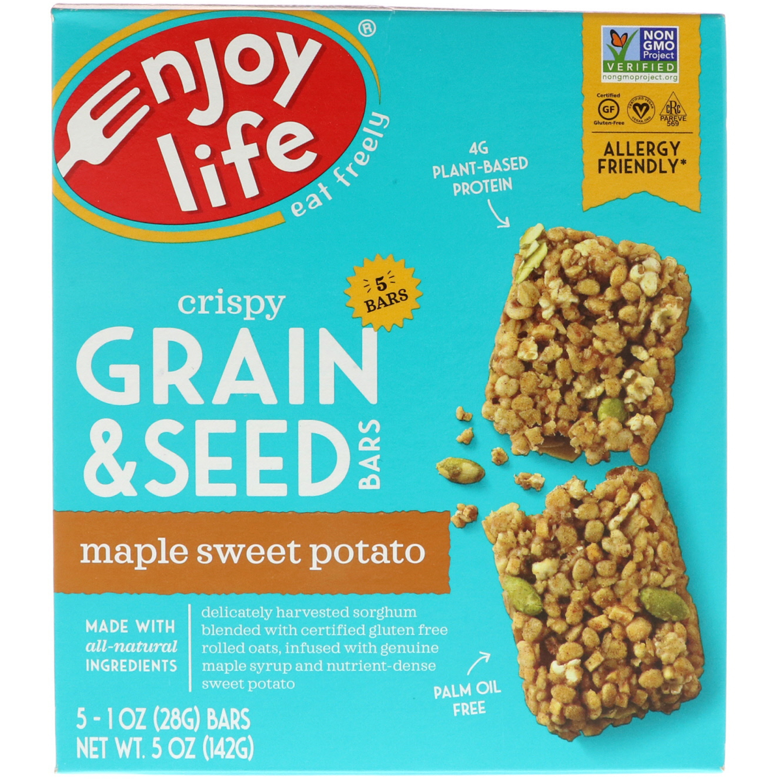 Enjoy Life Foods, Barra Crocante de Grãos e Sementes, Batata Doce e Bordo, 5 Barras, 1 oz (28 g) Cada