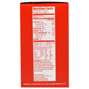 Mistura de farinha (arroz, trigo sarraceno, milheto), água, açúcar de cana em bruto, palma de palma, açúcar de cana marrom, glicerina vegetal, sabores naturais, extrato de baunilha, sal, canela, goma xantana, fermento (bicarbonato de sódio), konjac, extracto de alecrim.