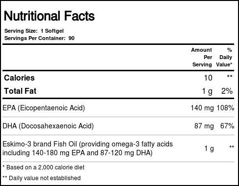 emium fish oil and omega-3 fatty acids from Eskimo-3 Double Strength by Enzymatic Therapy. With 1,000 mg of fish oil, you can be sure your’re getting a great source of EPA and DHA. It says so right on the box!