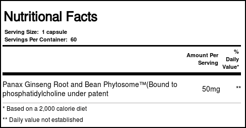 ary supplement to nutritionally support overall body function, energy and provide a sense of well-being. Panax Ginseng Phytosome™ provides a highly concentrated ginseng root extract (standardized to contain a minimum of 37.5% ginsenosides) bound to phosphatidylcholine. This complex is formed by a unique patented process to provide a superior form of Panax ginseng which is 4-5 times more concentrated than any other ginseng product.