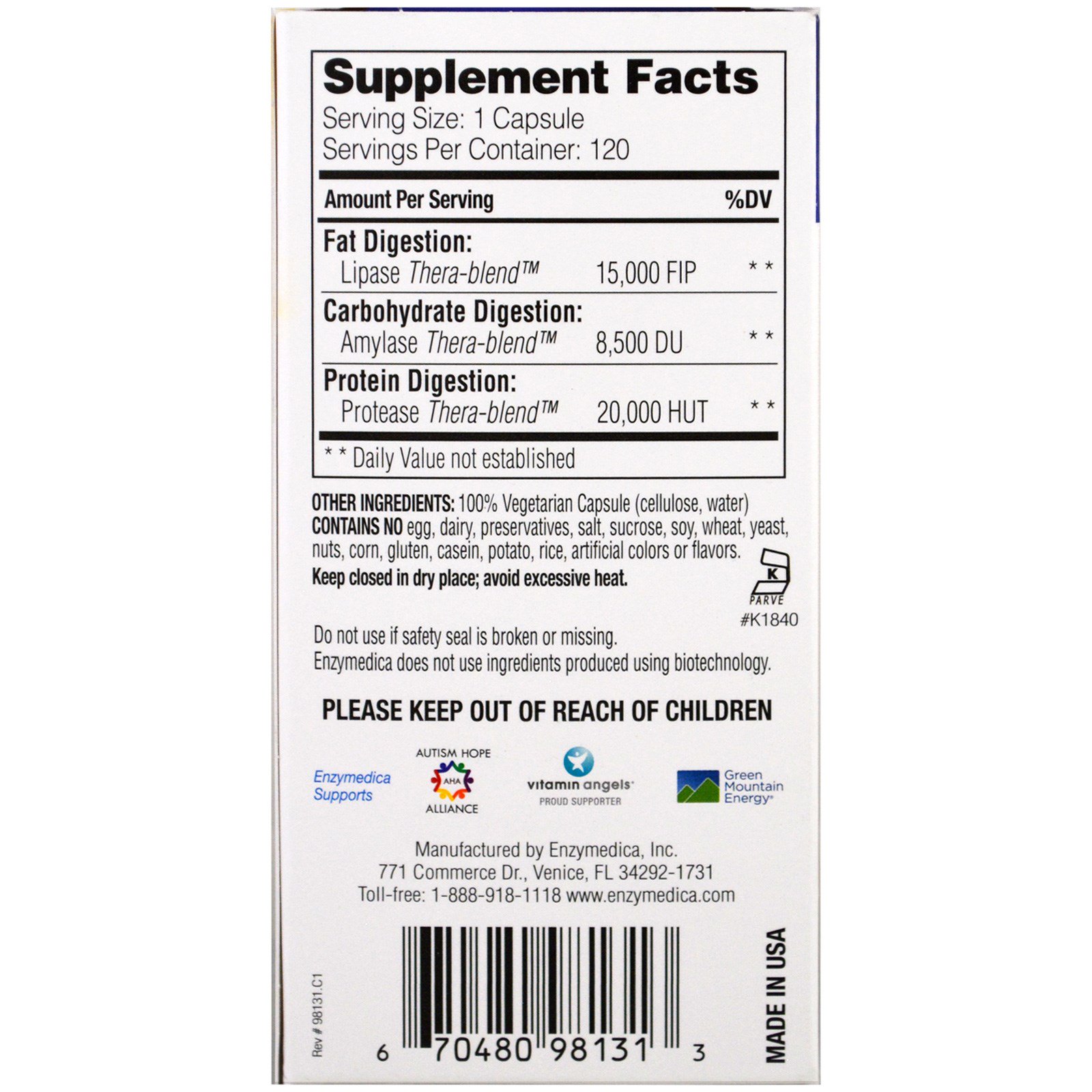 A Enzymedica não usa ingredientes derivados da biotecnologia.