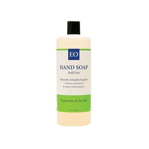 EO Essential Oil Products Liquid Hand Soap Peppermint and Tea Tree Description: Naturally Gentle for the Entire Family Naturally antiseptic and gentle with pure essential oils and organic herbal infusions. Two hands and some soap. Nothing special until they get all mixed up together and then the hands really become something. Clean, refreshed, relaxed and ready to become mixed with whatever is around the corner. Our Hand Soap is an evocative mix of organic herbs and therapeutic ingredients to keep your hands ready for anything and everything. Pure Peppermint and Tea Tree Essential Oils are invigorating and revitalizing. Our Coconut Cleansing Complex creates the gentlest, most effective and richly foaming soaps available. By now you probably know we never use irritating sodium lauryl/laureth sulfates. This concentrated and moisturizing formula is pH balanced to effectively cleanse without drying out your hands – ideal for the whole family. Our Organic Herbal Blend is soothing and healing. EO Hand Soap is biodegradable. Mint-tea-fresh. Tea Tree Essential Oil has been used for thousands of years by the Australian Aborigines because of its powerful antibacterial and antifungal properties. We blend it with refreshing Peppermint Essential Oil to create a naturally antiseptic Hand Soap that effectively cleanses, stimulated the senses and even promotes mental clarity. Choose wisely! No synthetic fragrances, only pure essential oils. Not tested on animals. Free Of Synthetic fragrances and sodium lauryl/laureth sulfates. Disclaimer These statements have not been evaluated by the FDA. These products are not intended to diagnose, treat, cure, or prevent any disease.