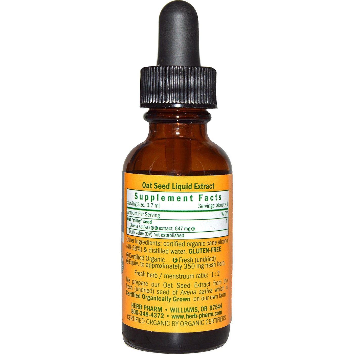 rb Pharm Oat Seed Extract has a base of 48-58% certified organic cane alcohol and distilled water.