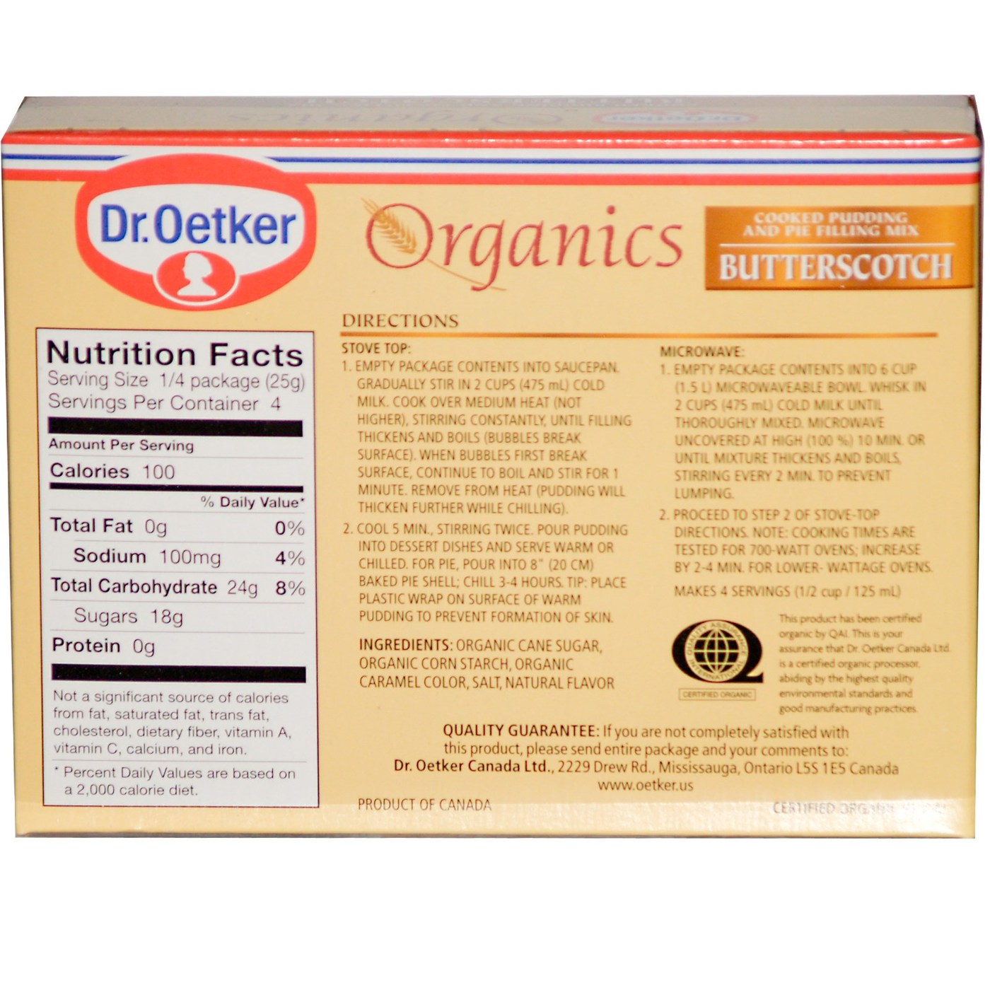Nota: Place plastic wrap on surface of warm pudding to prevent skin foumation. USDA ouganic.