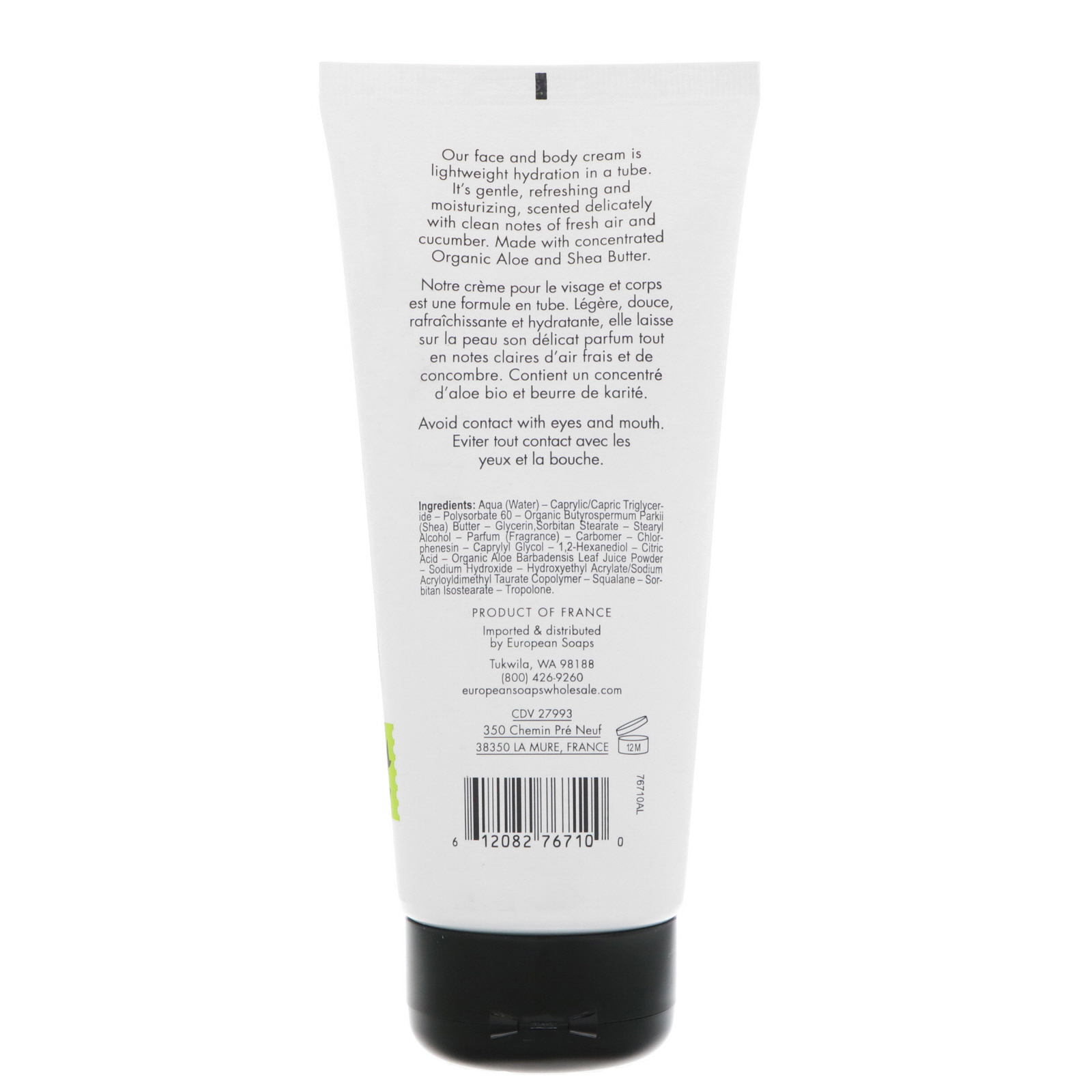 Our face and body cream is lightweight hydration in a tube. It’s gentle, refreshing and moisturizing, scented delicately with clean notes of fresh air and cucumber. Made with concentrated Organic Aloe and Shea Butter.